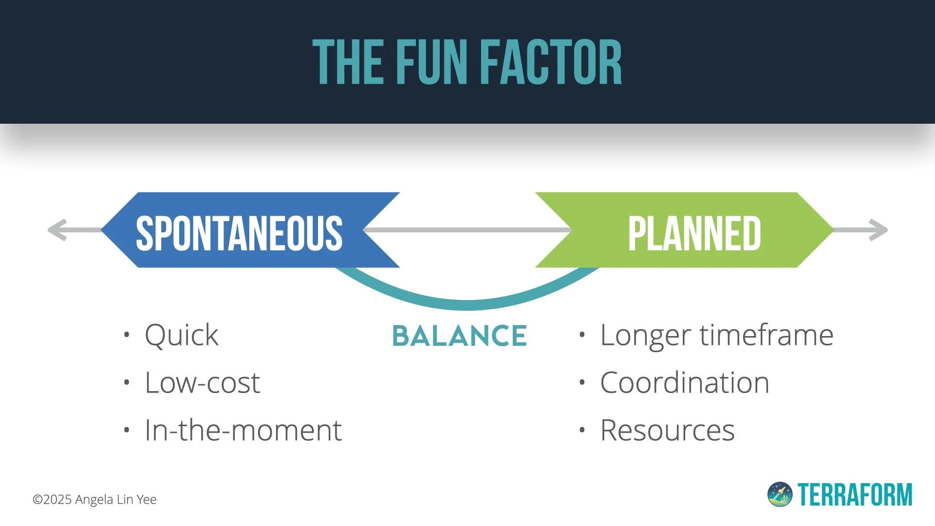 On one end are small, spontaneous moments that take little effort but spark instant energy.