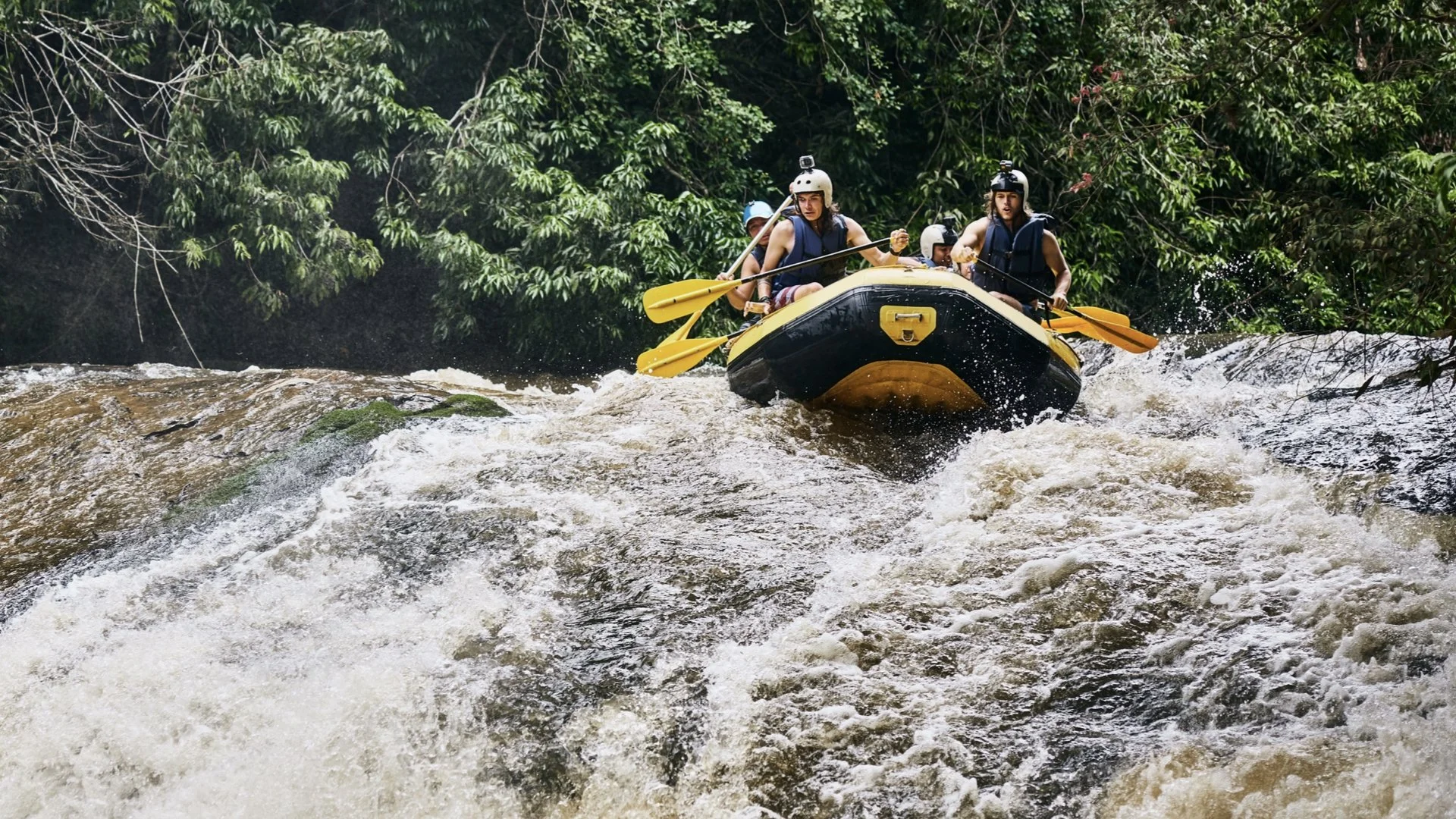 As the raft hit rapids, chaos erupted. A teammate launched into the air and into the river, and came up laughing hysterically. Unexpectedly, another jumped in on purpose. Soon everyone was laughing — even me!
